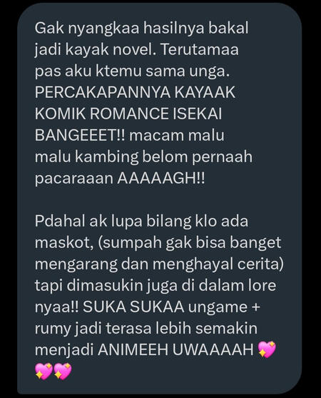 1.000 kata => Rp 27.000per 100 kata tambahan + Rp 3.000Merapikan Lore => Rp 7.500✿ Commercial Use ✿